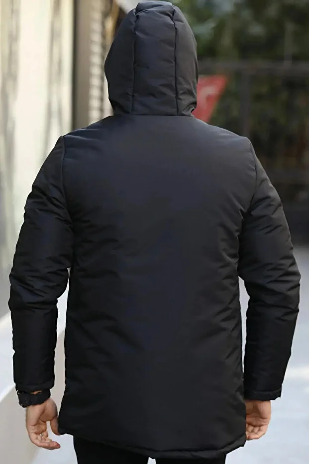 0 Review Of Product جاكيت ومعطف وباركة شتوي رجالي أسود مقاوم للرياح بغطاء للرأس من D1fference