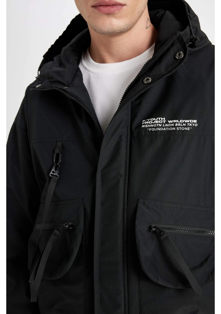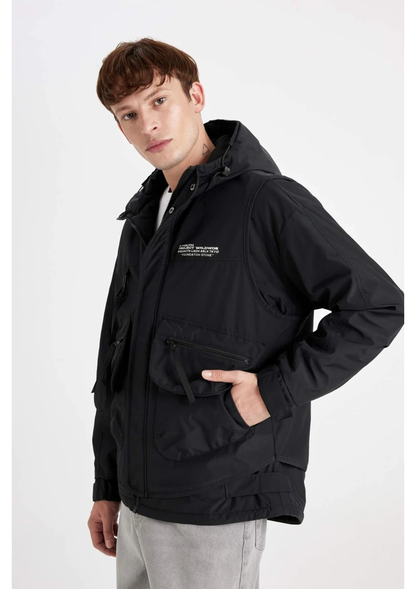 جاكيت DeFacto بقصة عادية وتفاصيل مطبوعة وسحاب وغطاء رأس وجيوب