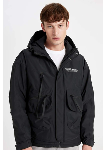 0 Review Of Product جاكيت DeFacto بقصة عادية وتفاصيل مطبوعة وسحاب وغطاء رأس وجيوب