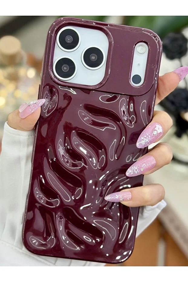 جراب سيليكون منقوش مقاوم للصدمات متوافق مع آيفون 17 برو ماكس من جو أكسسواريز، بلون عنابي