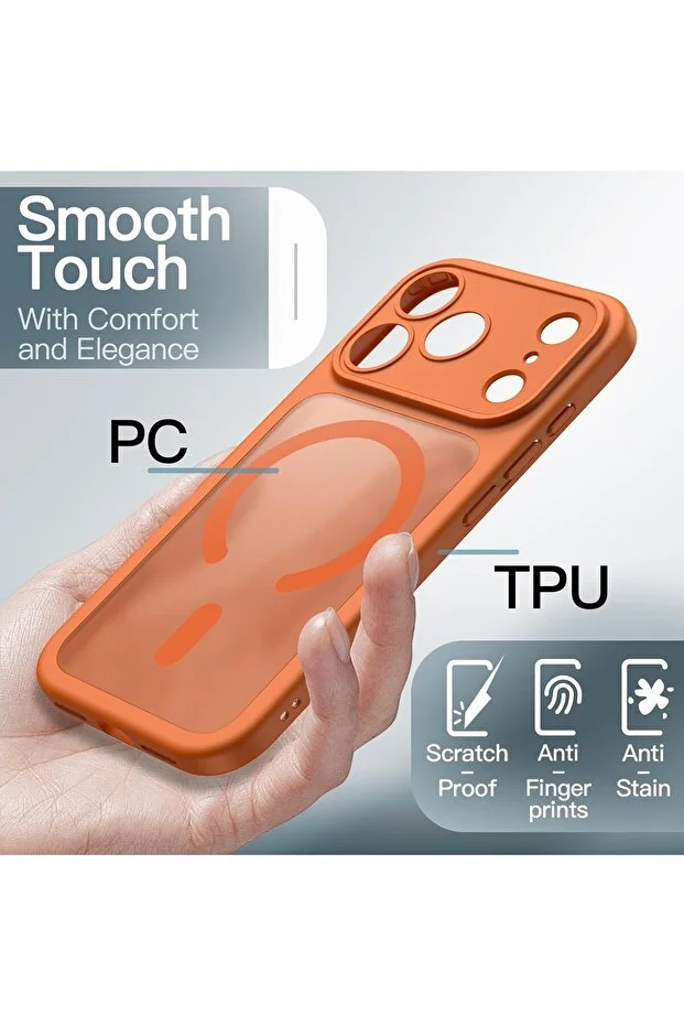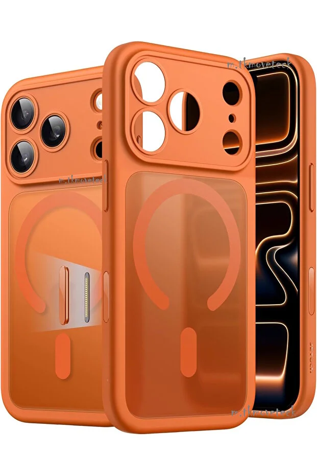 جراب غير لامع لهاتف iPhone 17 Pro Max مع شحن Magsafe وأزرار حساسة وحواف برتقالية ناعمة ملونة