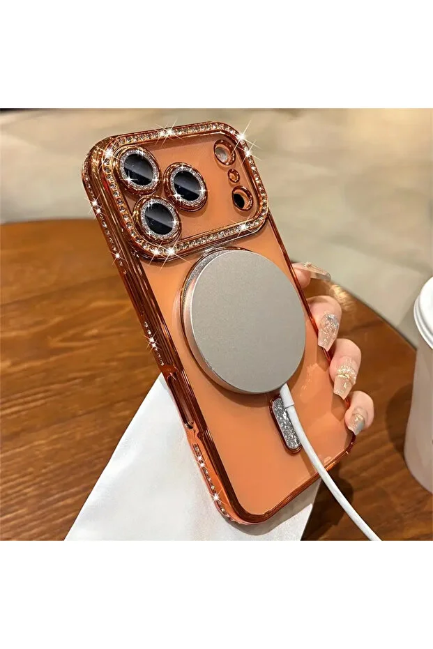 جراب فيباكس لهاتف آيفون 17 برو ماكس مرصع بأحجار الراين، وواقي عدسة الكاميرا، وحافظة شحن ماج سيف، وغطاء ناعم شفاف وملون.