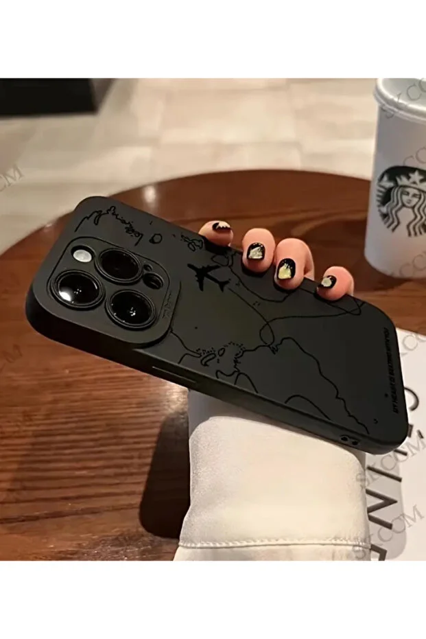 جراب متوافق مع iPhone 14 Pro Max، غطاء حماية ناعم للكاميرا بتصميم خريطة باللون الأسود غير اللامع