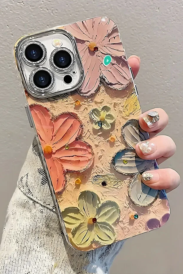 0 Review Of Product جراب متوافق مع iPhone 16 Pro Max لحماية عدسة الكاميرا من الحجر متغير اللون بنمط زهرة وردية زاهية