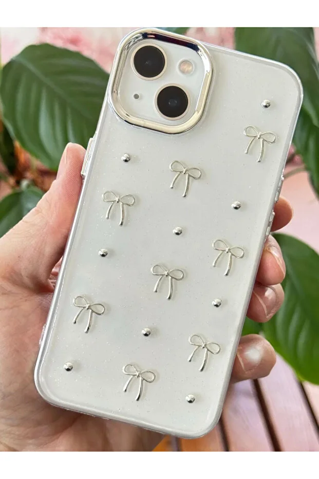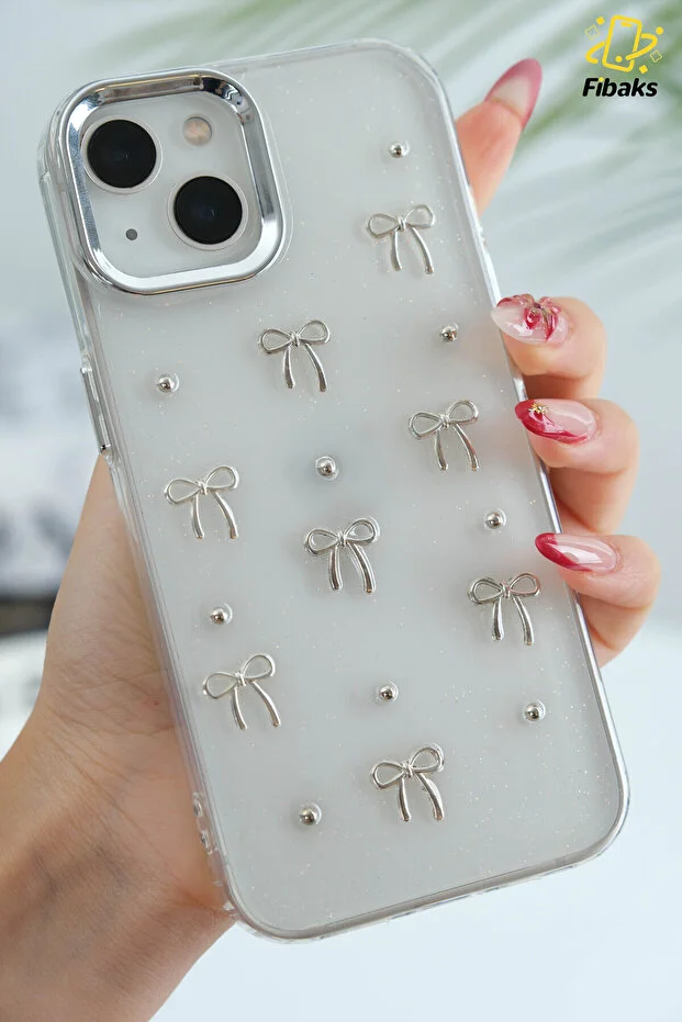 تصميم بتفاصيل فيونكة فضية ولؤلؤية