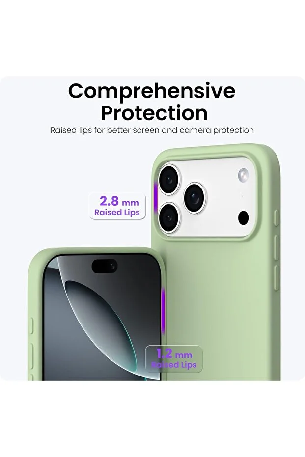 جراب iPhone 17 Pro Max مخملي مع شاشة وكاميرا مرتفعة من السيليكون باللون الأخضر الفاتح