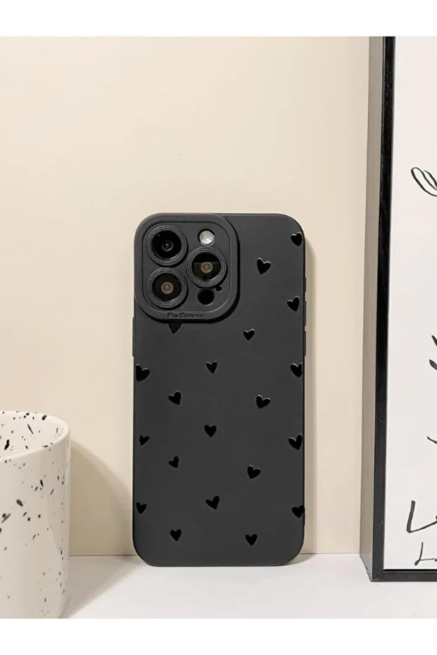 0 Review Of Product جراب KVK PRIVACY متوافق مع iPhone 13 Pro Max، غطاء حماية ناعم للكاميرا بنقشة قلب أسود غير لامع