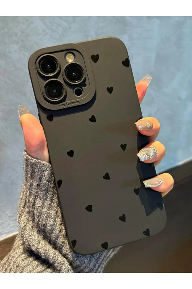 جراب KVK PRIVACY متوافق مع iPhone 13 Pro Max، غطاء حماية ناعم للكاميرا بنقشة قلب أسود غير لامع