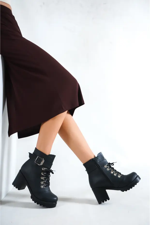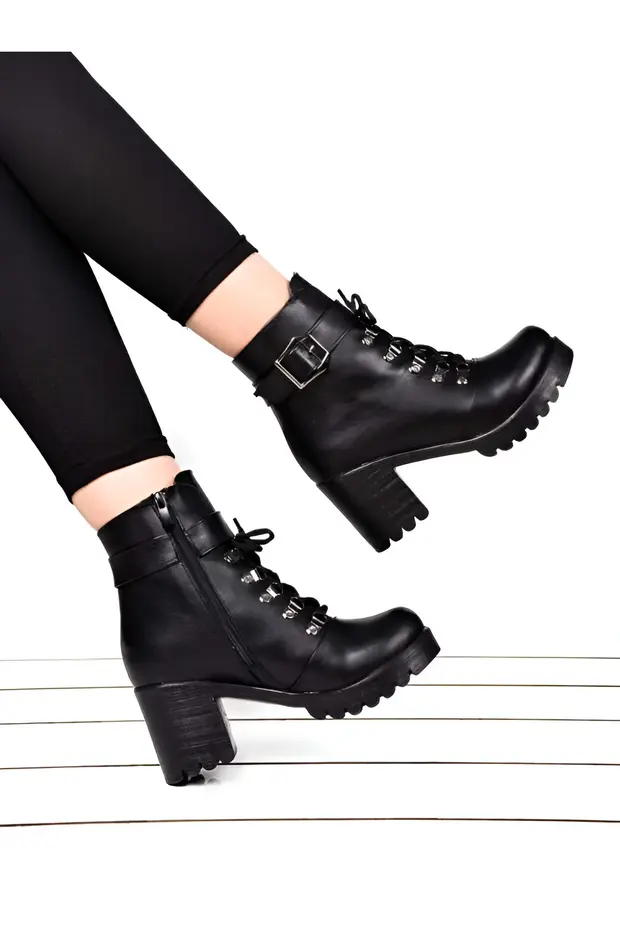 0 Review Of Product حذاء بكعب عالٍ من الجلد الأسود للنساء من بيكاجو، مزود بإبزيم خطافي، موديل BKJ10080