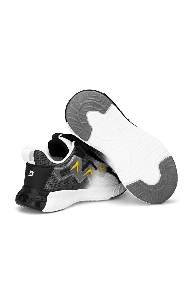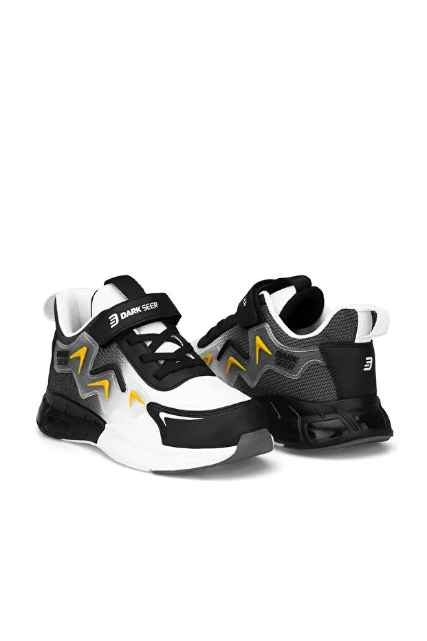 حذاء رياضي للأطفال من دارك سير باللونين الأبيض والأسود والأصفر