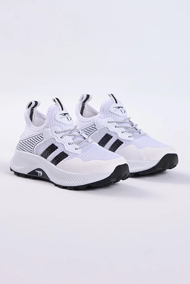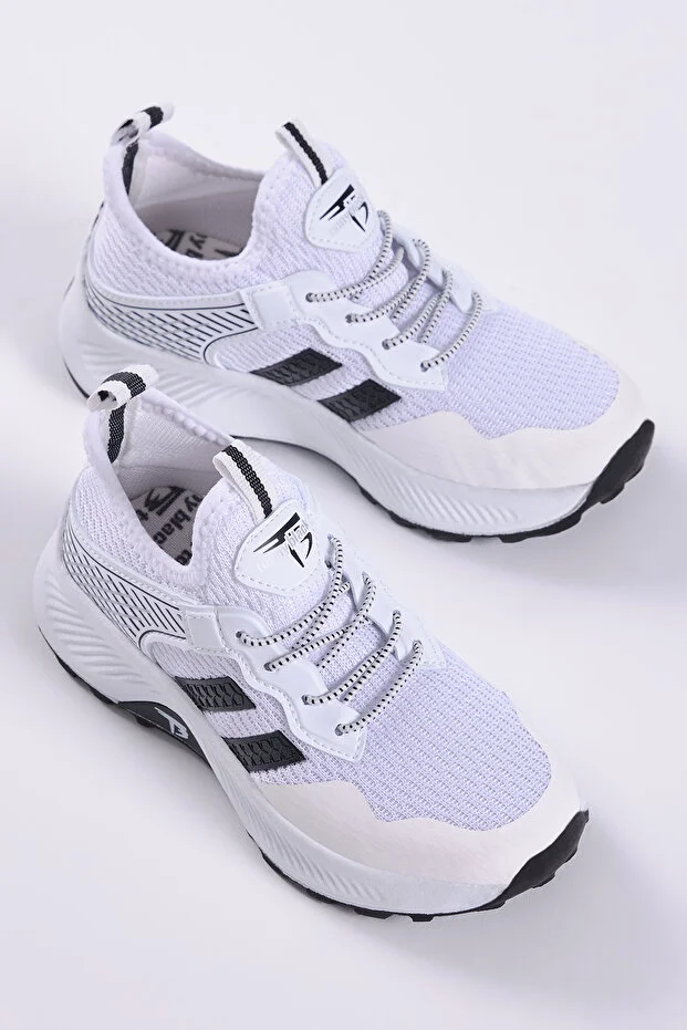 حذاء رياضي Tonny Black Kids للجنسين باللونين الأبيض والأسود، مريح وجيد التهوية من القماش، برباط