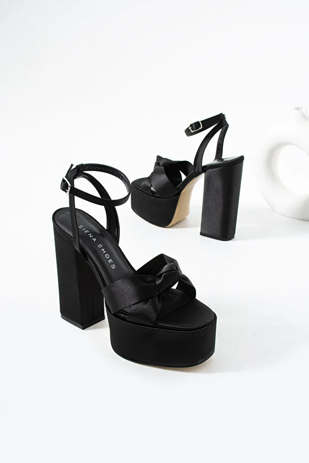 حذاء سيينا ريبيل النسائي ذو الكعب العالي والمنصة، مصنوع من الساتان الأسود
