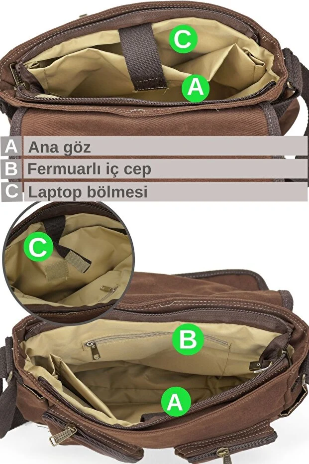 0 Review Of Product حقيبة مدرسية للجنسين من كابادوكيا فينتيج 4017، مصنوعة من القطن الغبرديني، مقاس 14 بوصة، مزودة بحزام كتف متعدد الجيوب ومغلقة