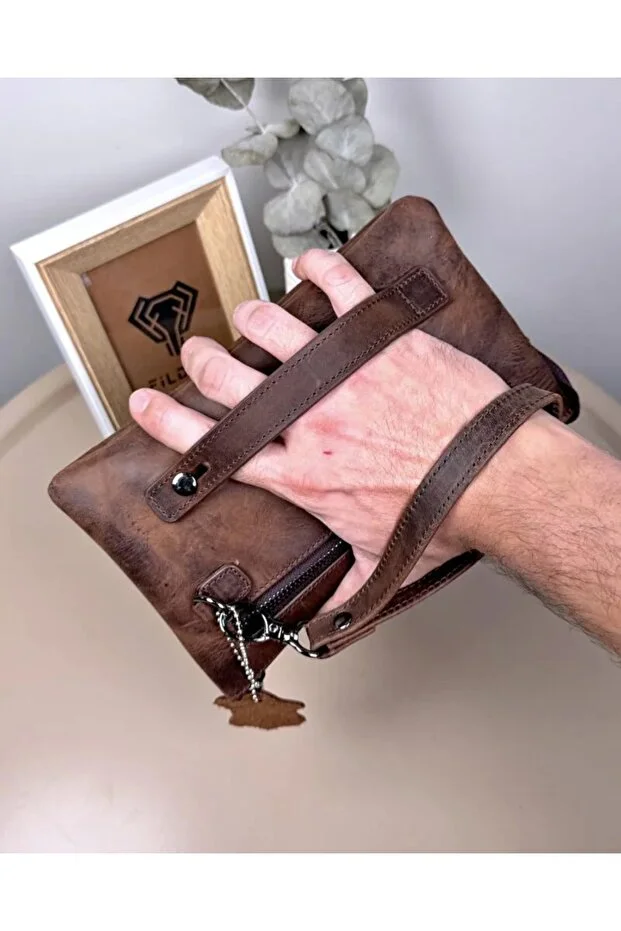 حقيبة يد رجالية بسحاب من جلد الفيل الأصلي مع حزام مقبض 2113