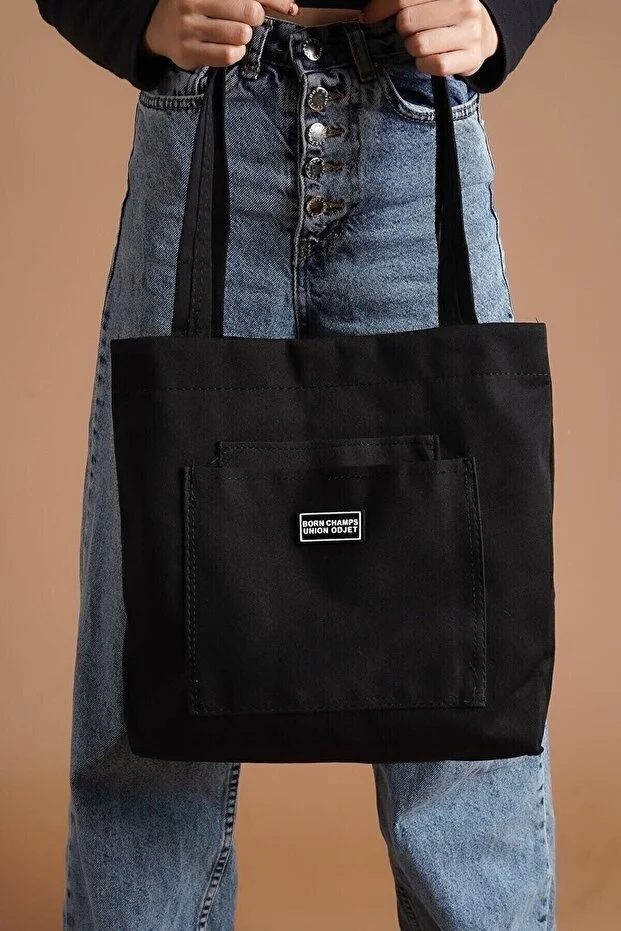 حقيبة يد وحقيبة كتف نسائية من مجموعة SHINING COLLECTION مصنوعة من قماش ناعم باللون الأسود