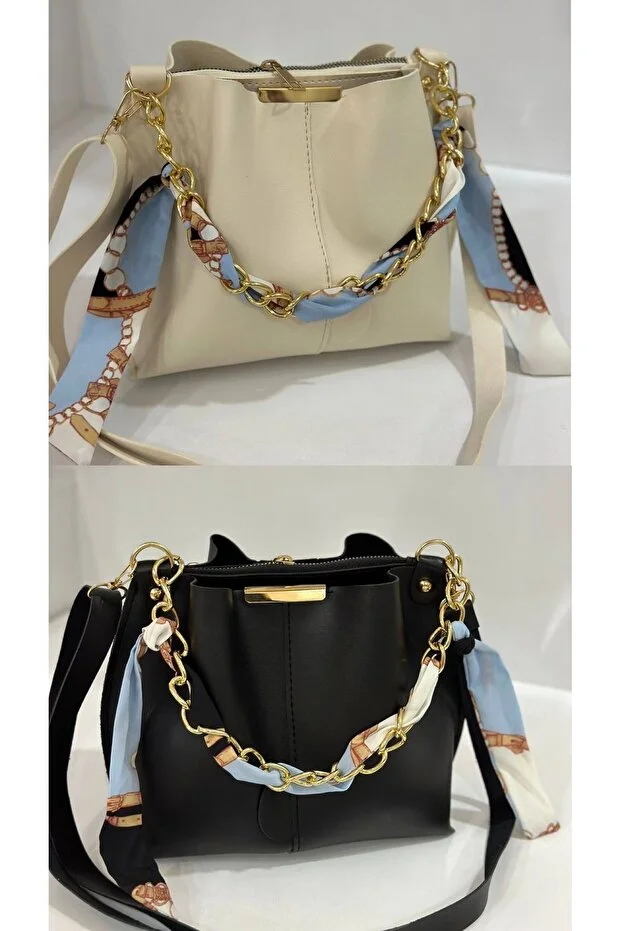 حقيبة يد وكتف نسائية من ESTUTE مكونة من قطعتين من الجلد الناعم بثلاثة أقسام مع وشاح وسلسلة إكسسوار