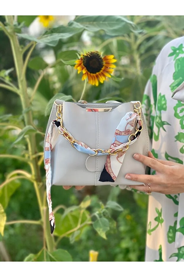 حقيبة يد وكتف نسائية من ESTUTE مكونة من قطعتين من الجلد الناعم بثلاثة أقسام مع وشاح وسلسلة إكسسوار