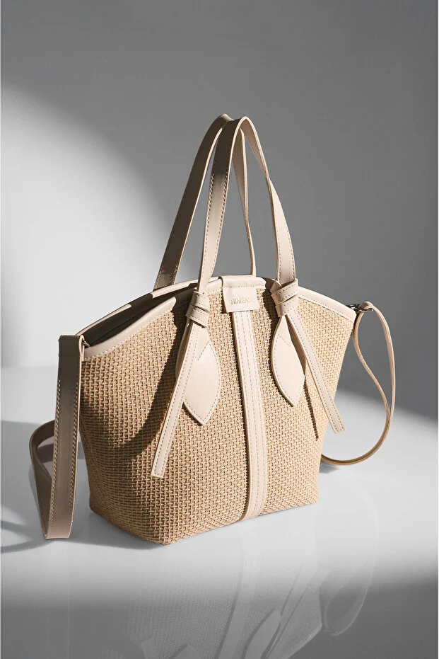 حقيبة يد وكتف نسائية من Rimense مبطنة بالخوص الكريمي بسحاب