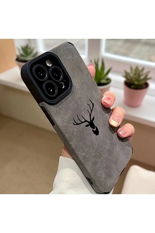 حماية للكاميرا من KVK PRİVACY لهاتف iPhone 13 Pro Max من الجلد السويدي الفاخر بنقشة غزال، متوافق مع KVK PRİVACY لهاتف iPhone 13 Pro Ma