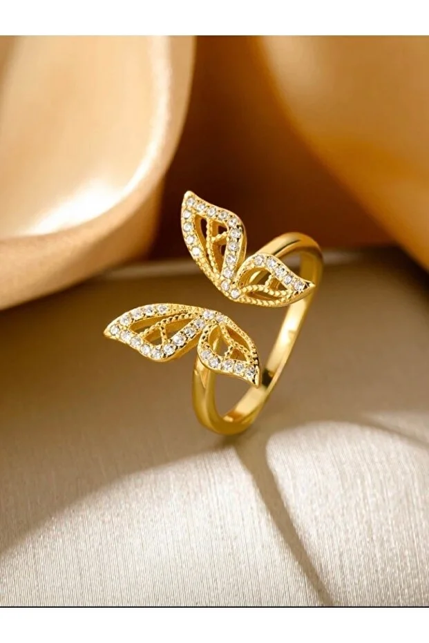 خاتم نسائي من الفضة على شكل فراشة مطلي بالذهب عيار 14 قيراطًا