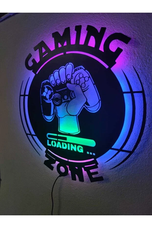 0 Review Of Product ديكورافين جيمينج زون جيمر، لوحة جدارية خشبية مضاءة بتقنية LED