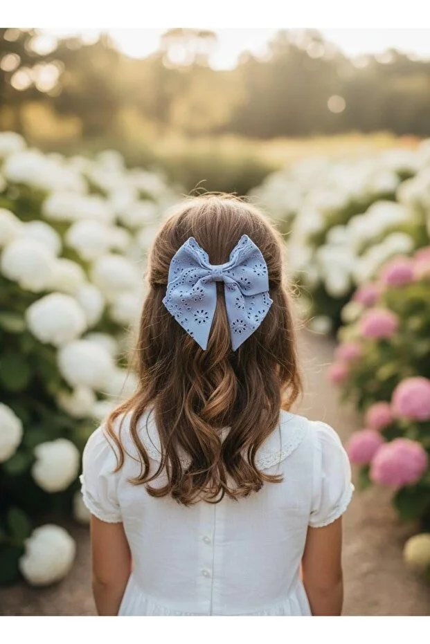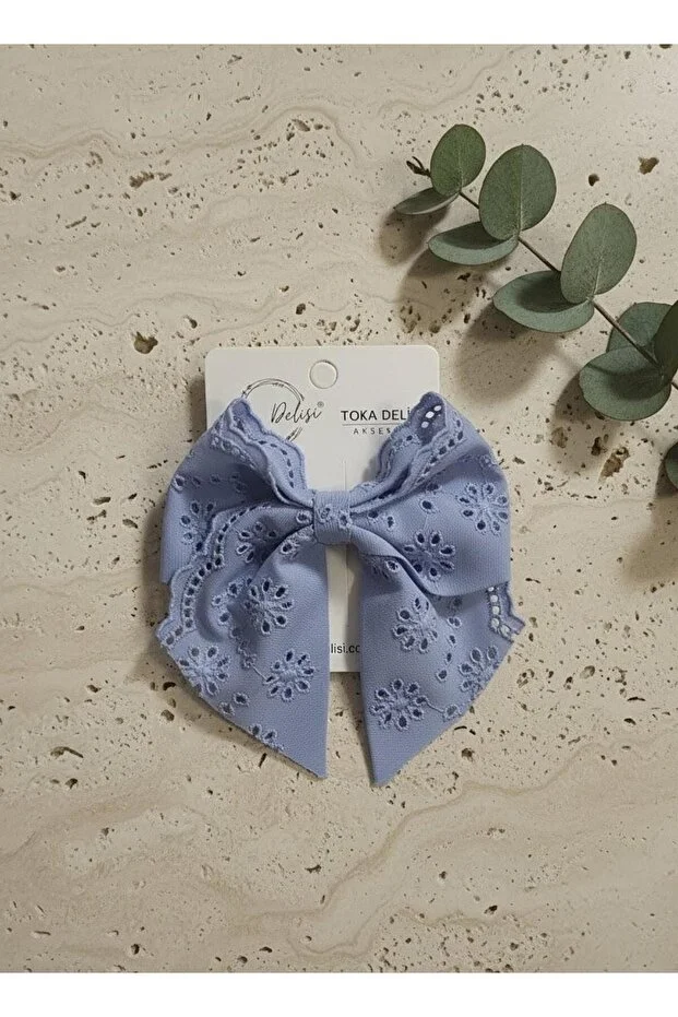 رباط شعر أزرق مصنوع يدويًا على شكل فراشة للأطفال، دعوة، حفلة موسيقية، يوم مميز، رباط شعر بدبوس