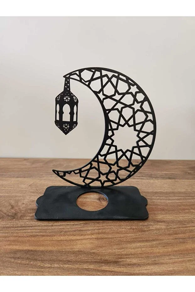 0 Review Of Product زينة رمضان من ALSHOP، حامل شموع عاكس مزخرف مزدوج الجوانب بنمط سلجوقي، مطلي بالذهب/الأسود، بإضاءة خلفية ذهبية/سوداء