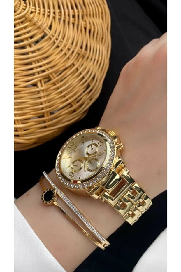 ساعة İSTLIV النسائية الكلاسيكية التناظرية المصنوعة من الفولاذ الذهبي (السوار غير متضمن في السعر)