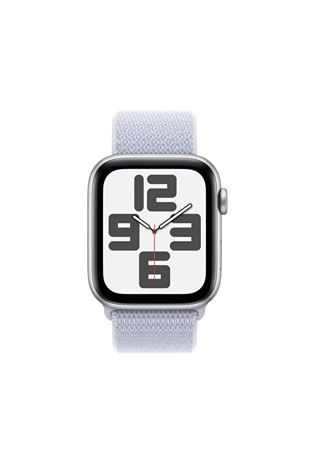 ساعة أبل SE GPS مقاس 40 مم، هيكل من الألومنيوم الفضي + سوار رياضي أزرق سماوي