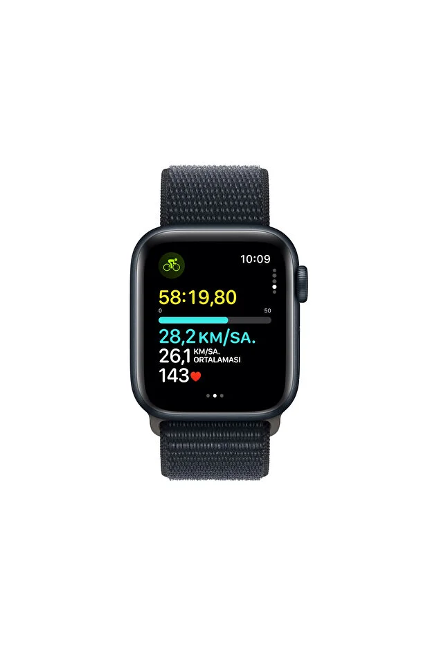 ساعة أبل SE GPS مقاس 40 مم، هيكل من الألومنيوم باللون الأسود وحزام رياضي باللون الأسود