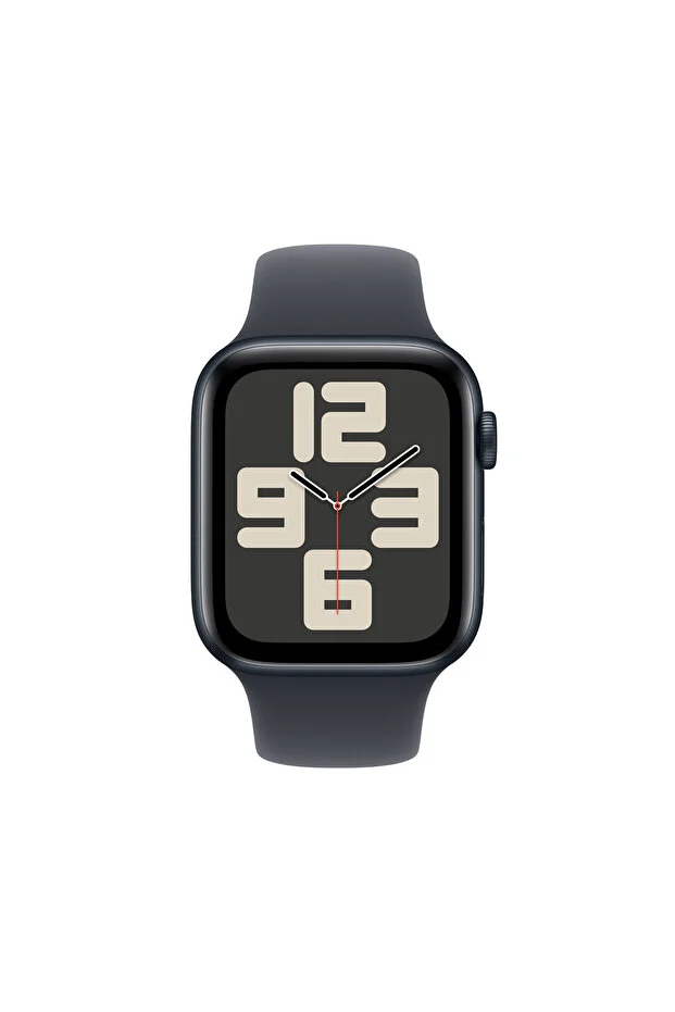 ساعة أبل SE GPS مقاس 44 مم، هيكل من الألومنيوم باللون الأسود + سوار رياضي باللون الأسود - مقاس متوسط/كبير