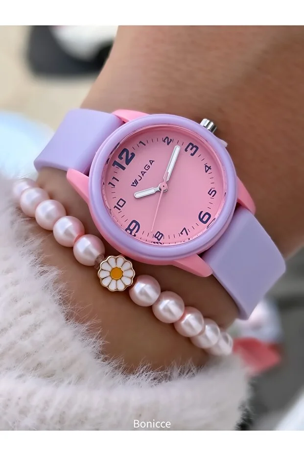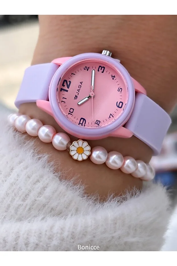ساعة جاغا الرقمية للبنات بسوار من السيليكون البنفسجي مناسبة للاستخدام في حمام السباحة والبحر + سوار ديزي