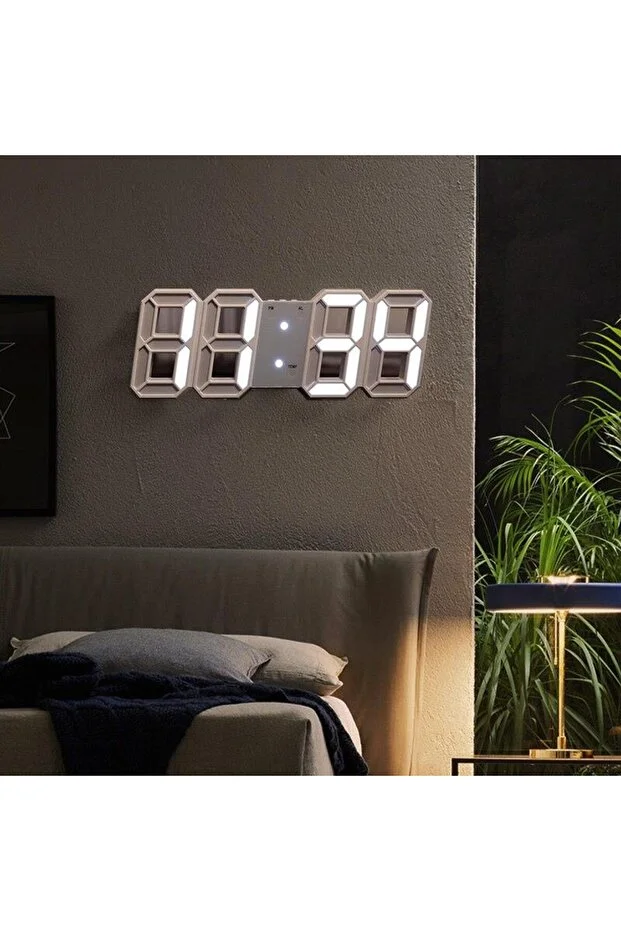 ساعة حائط أو طاولة رقمية مزخرفة بإضاءة LED بيضاء من نوع فالكيري