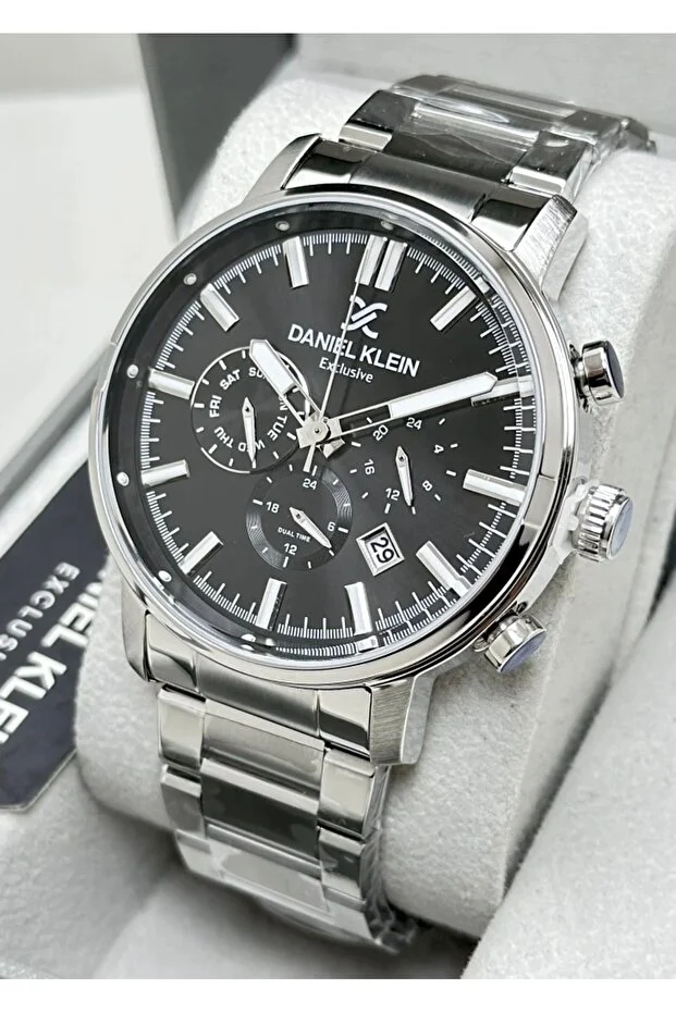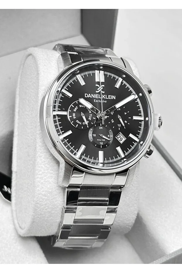 ساعة دانيال كلاين الأصلية للرجال بحزام فولاذي مقاوم للماء ووظائف متعددة، مع ضمان لمدة عامين.