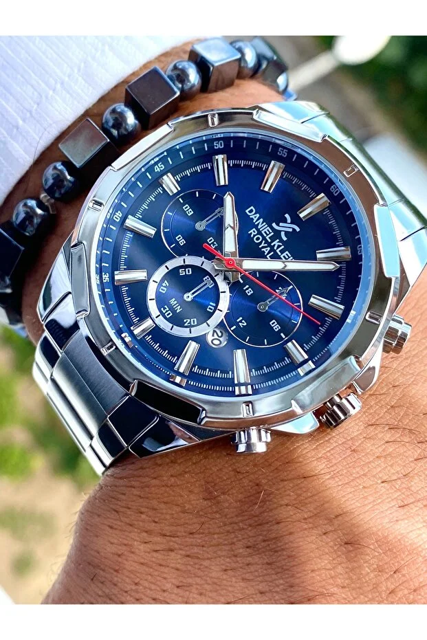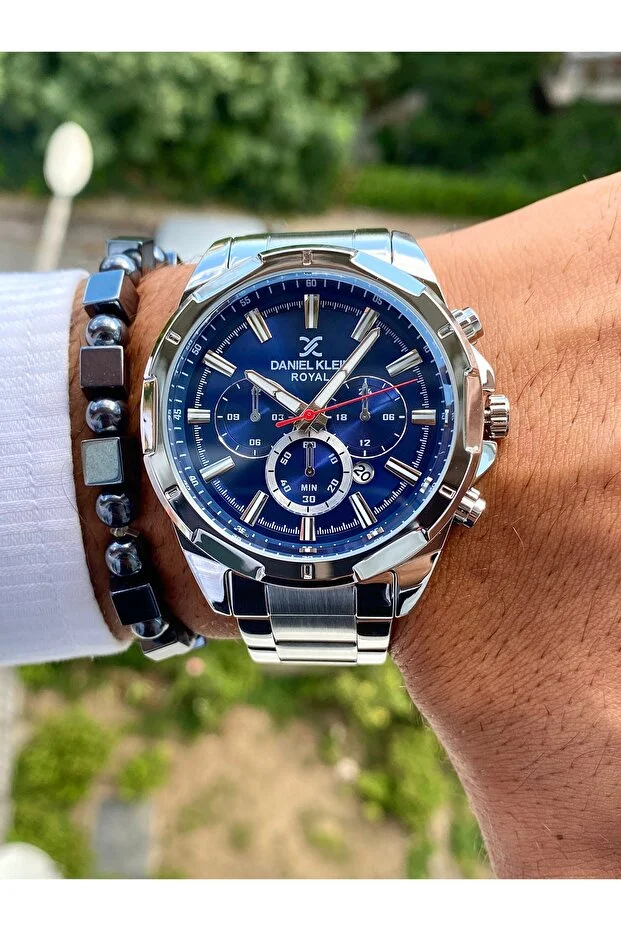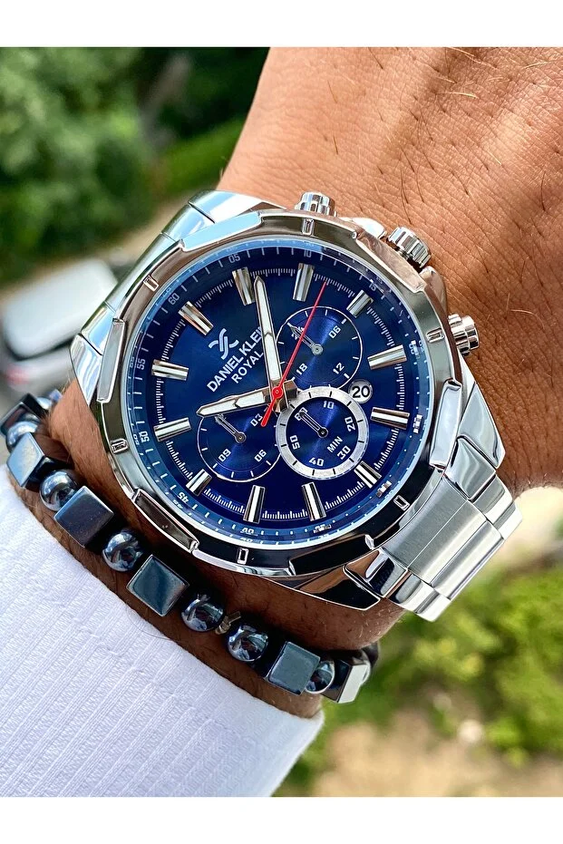 0 Review Of Product ساعة دانيال كلاين الأصلية للرجال بسوار من الفولاذ المقاوم للصدأ، مقاومة للماء حتى 3 ضغط جوي، لون فضي، أزرق داكن