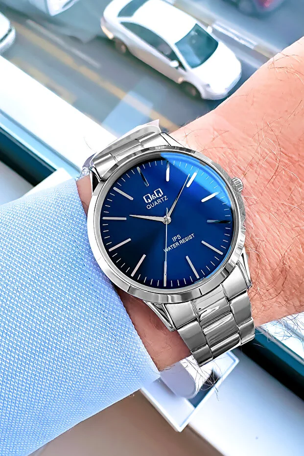 0 Review Of Product ساعة رجالية أصلية من Q&Q تعمل بالكوارتز، لون فضي، سوار من الفولاذ، مقاومة للماء حتى 3 ضغط جوي - QQE2001C7