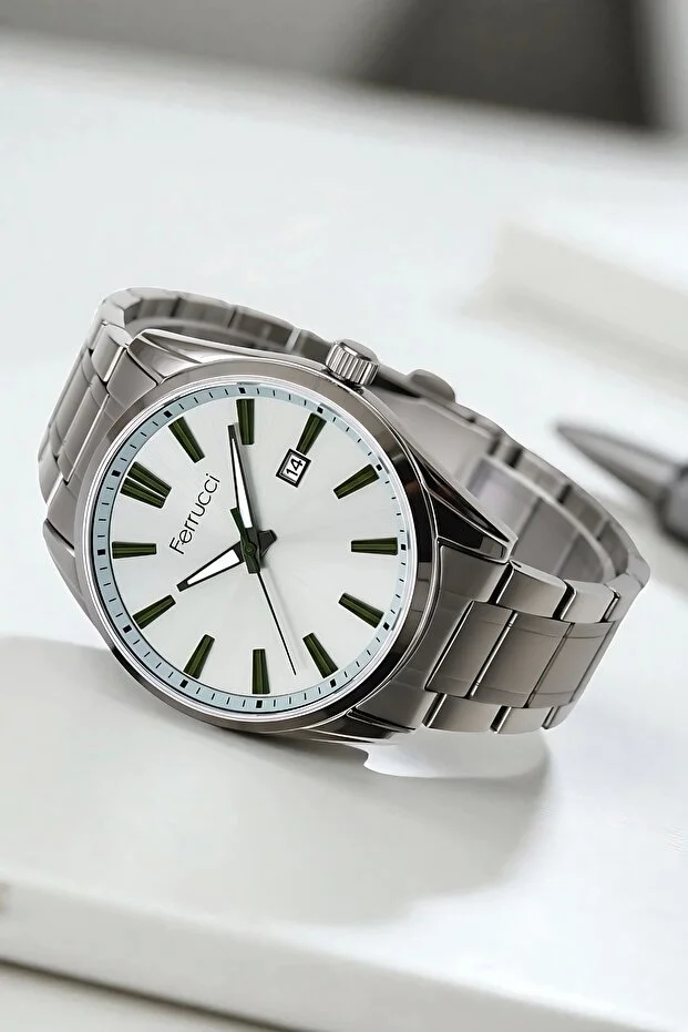 0 Review Of Product ساعة فيروتشي كاليندر للرجال بسوار من الفولاذ وهيكل من الفولاذ ومقاومة للماء حتى 3 أجهزة الصراف الآلي باللون المدخن zmfer161