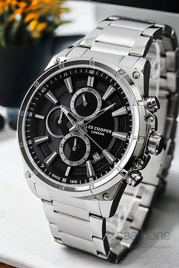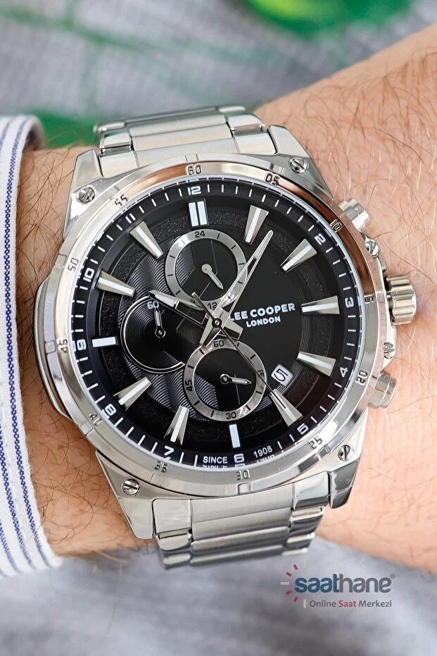 ساعة لي كوبر الرجالية مزودة بكرونوغراف وتقويم ووظائف أخرى، باللونين الأسود والفضي