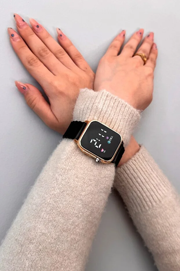 0 Review Of Product ساعة يد أكوا دي بولو 1987 ذهبية سوداء للجنسين من السيليكون رقمية بإضاءة LED Apwr033302