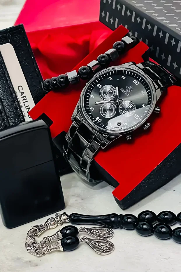 ساعة يد رجالية من إس. بولو، ولاعة، حامل بطاقات مسبحة، طقم أساور، هدية لعيد الأب وعيد الحب