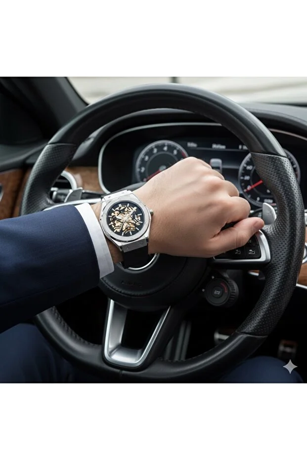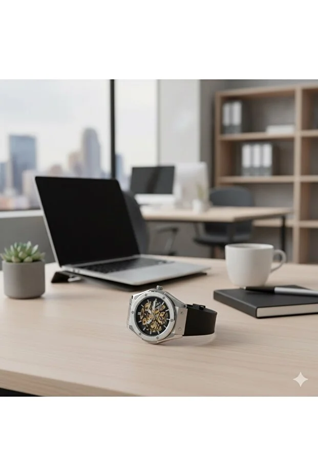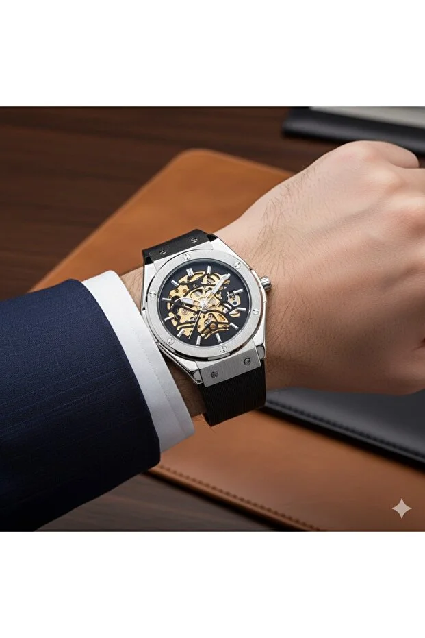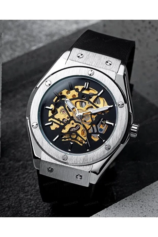 0 Review Of Product ساعة يد سيور ذات حركة أوتوماتيكية وسوار من السيليكون