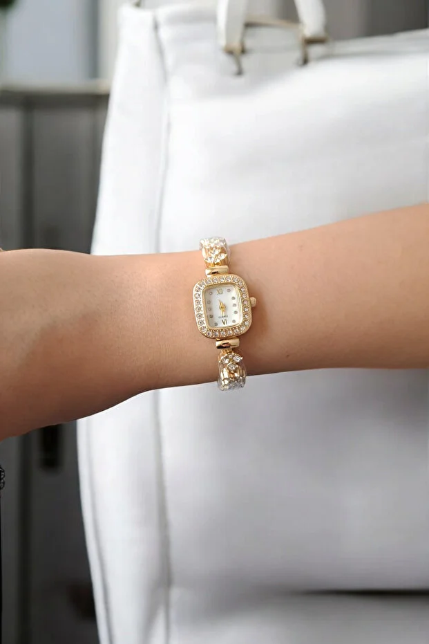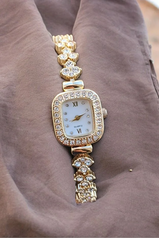 ساعة يد مربعة ذهبية اللون من DARK BLANC بحجر عتيق