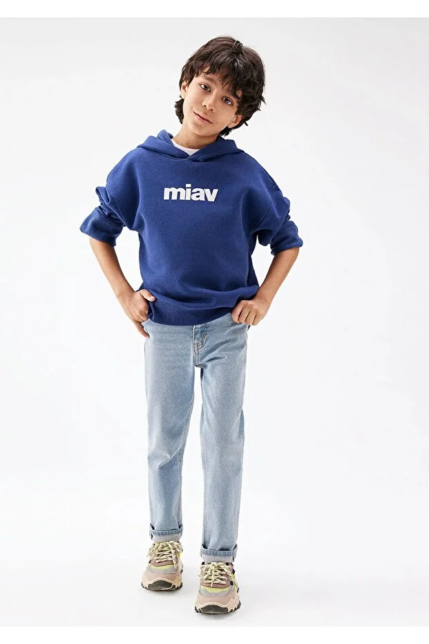 سترة بغطاء رأس مطبوعة باللون الأزرق من ماركة مياف --
