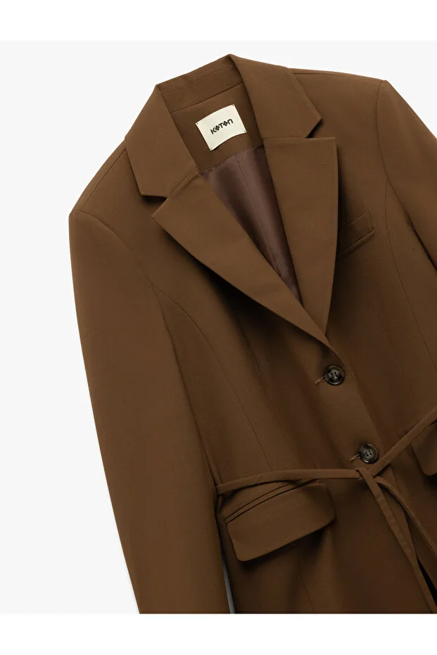 0 Review Of Product سترة بليزر كبيرة الحجم من القطن بأكمام طويلة وصدر مزدوج وحزام