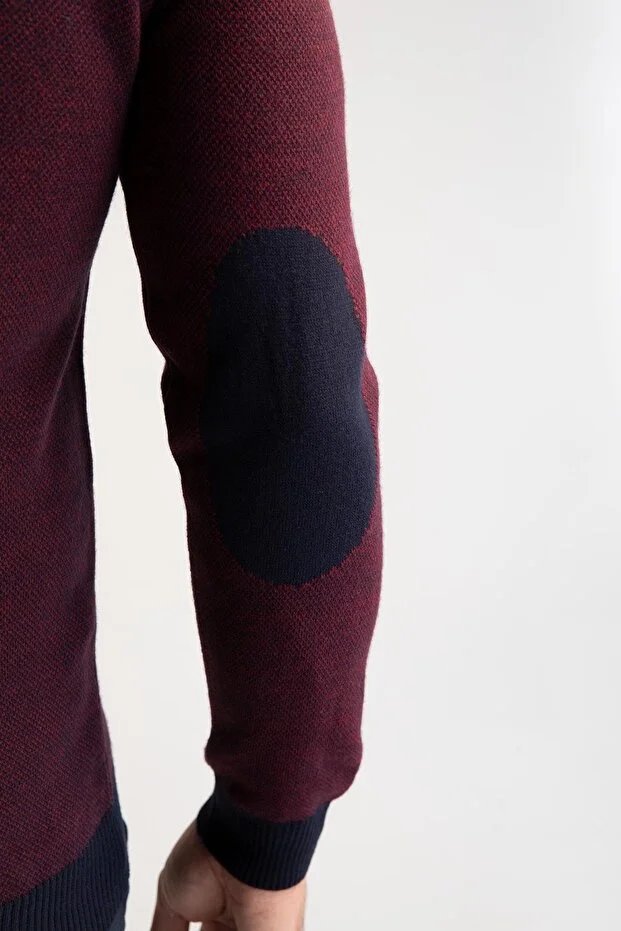 سترة ديفاكتو المحبوكة بقصّة Slim Fit ورقبة دائرية وأكمام مرقعة وتفاصيل