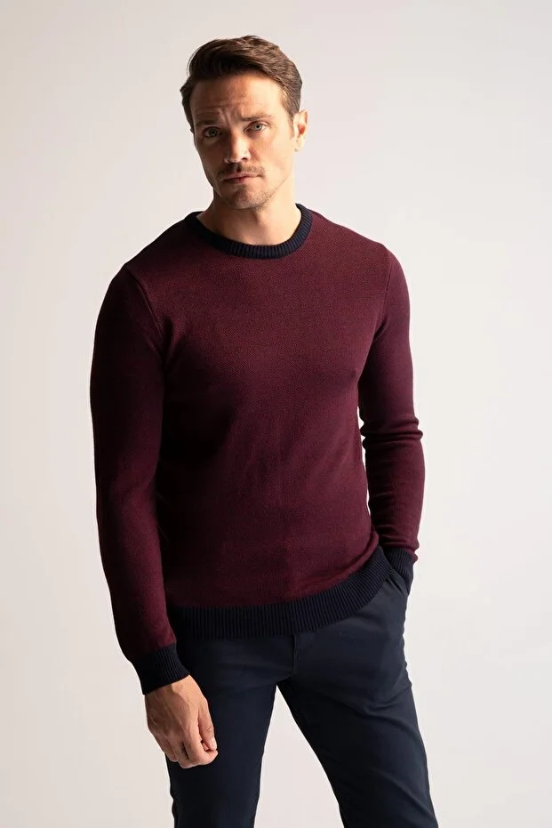 0 Review Of Product سترة ديفاكتو المحبوكة بقصّة Slim Fit ورقبة دائرية وأكمام مرقعة وتفاصيل