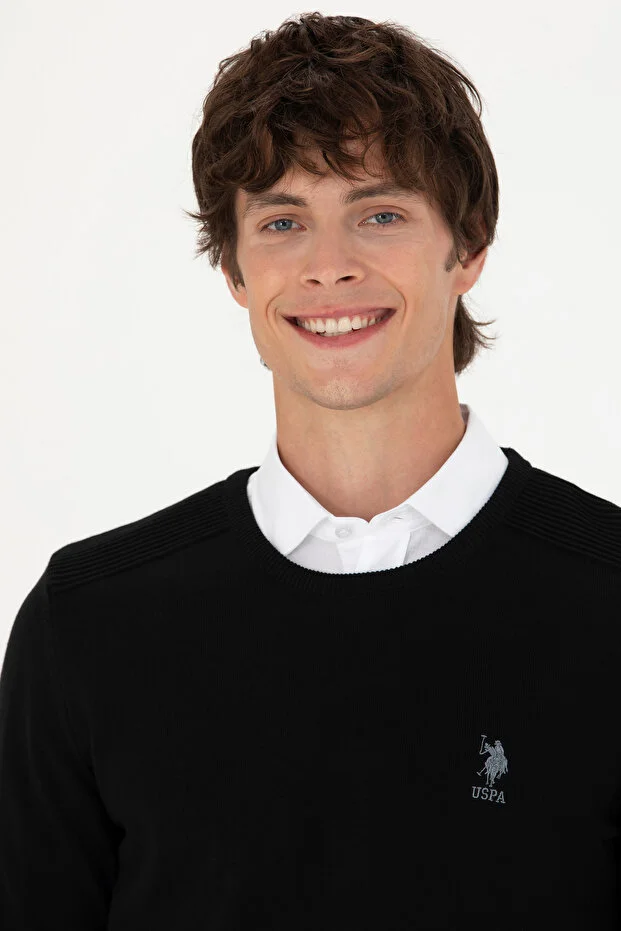 سترة رجالية سوداء أساسية من يو إس بولو أسن