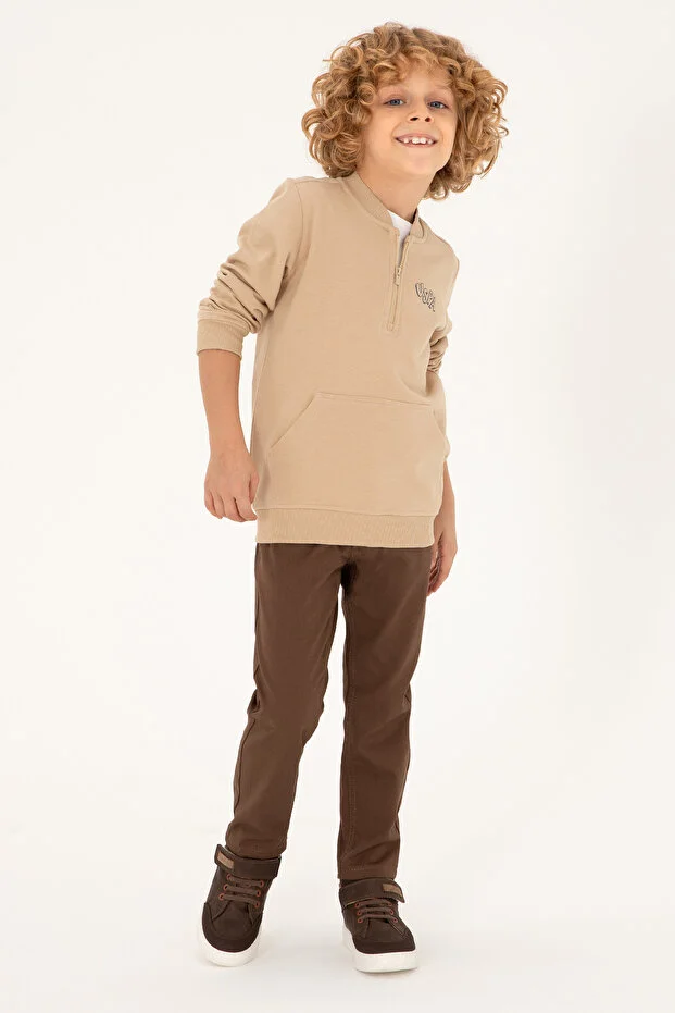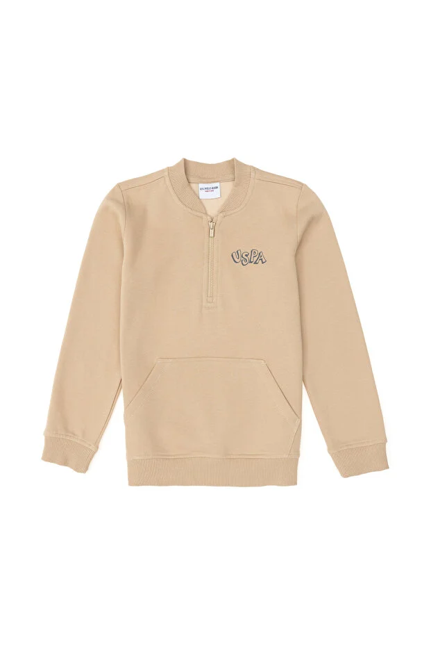 سترة رياضية للأولاد من يو إس بولو أسوسييشن، لون رملي، بنصف سحاب -