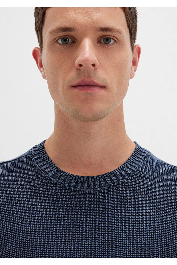 0 Review Of Product سترة زرقاء داكنة برقبة دائرية وقصة ضيقة / قصة ضيقة