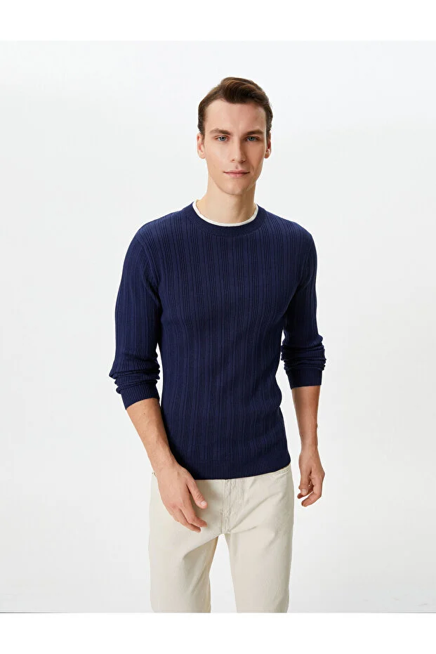 سترة كوتون بقصّة Slim Fit محبوكة بياقة منقوشة وأكمام طويلة